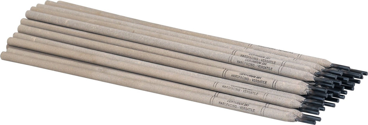 281 Martensitic Hard Facing Stick Rod Electrode, 57 to 62 HRC Hardness, 110 to 150 Amps, AC/DCRP Polarity, 5/32"