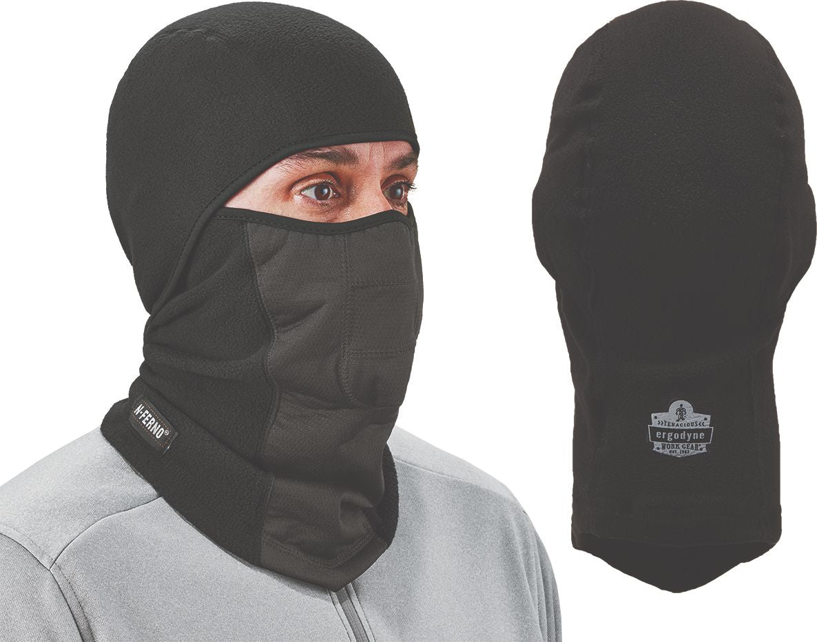 Stretchable fleece with wind-resistant fabric covering the nose and neck for the ultimate in winter protection and comfort.