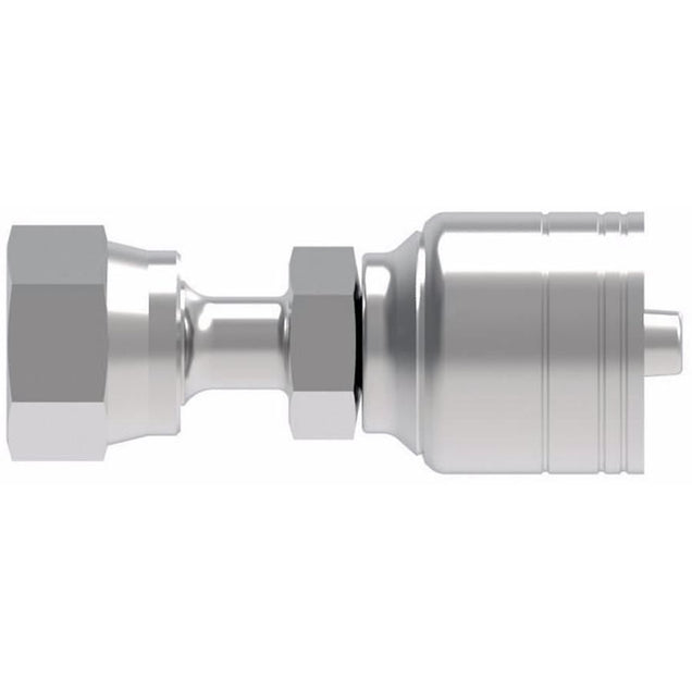Hydraulic Crimp-On Hose Coupling, Straight, Carbon Steel, Female Swivel JIC 37° Flare, 1/4 (-4) x 9/16-18 (-6)