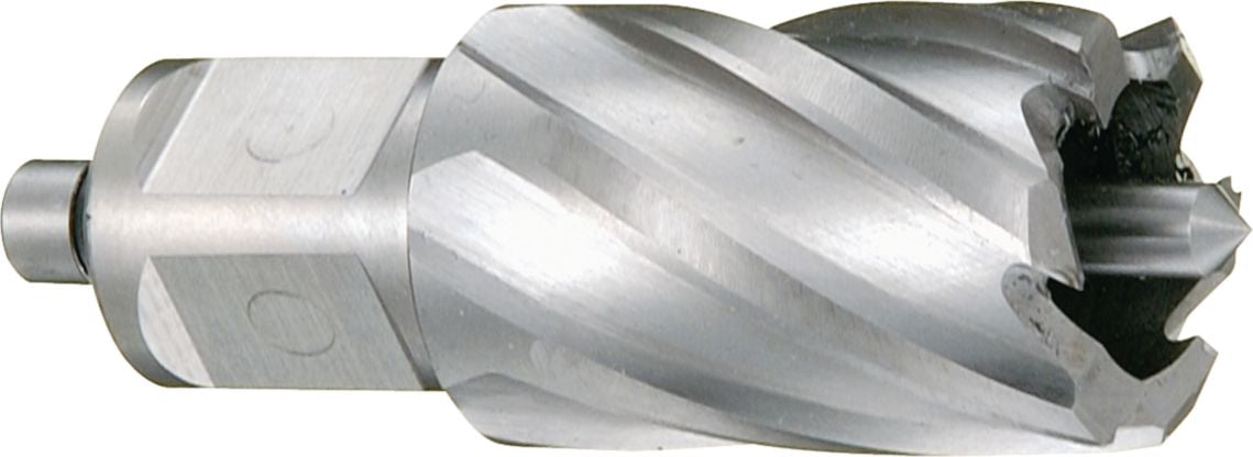 Steelmax® Annular Cutters reduce horsepower and torque requirements by only cutting the periphery of the hole resulting in a burr-free, reamed-quality hole. As a result, the operation is completed three times faster than costly pilot hole and step drilling. Chip load per tooth is greatly reduced, for high penetration, improved hole quality and longer tool life. The core or slug left behind is evidence of this efficient cutting method. Holes on curved surfaces as well as interrupted cuts can be made without distortion.
