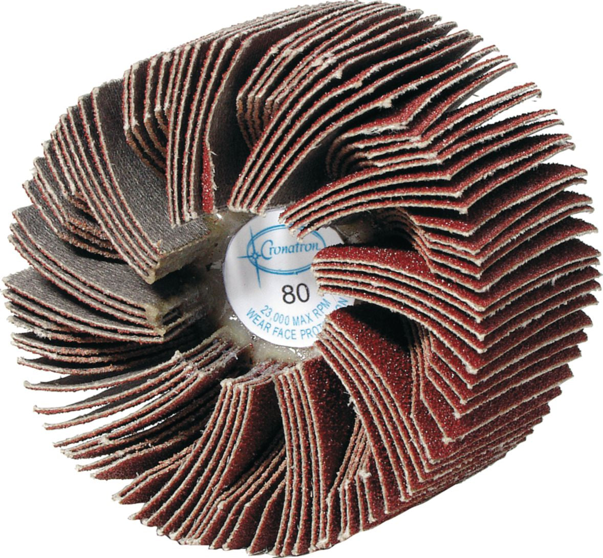Mounted Cup Style Flap Wheel, 80 Grit, 2-1/2" Diameter, 1/4" Stem
