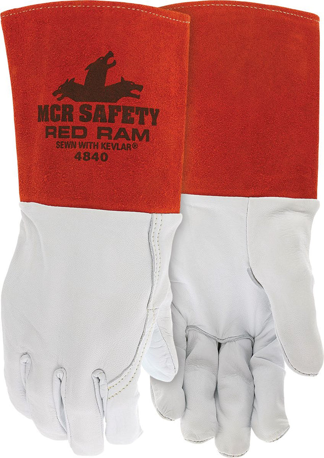4840 Red Ram® Glants de soudage Mig / TIG en cuir de chèvre Red Ram®, manchette en cuir de vache à vaches divisé, blanc et rousse, taille grande