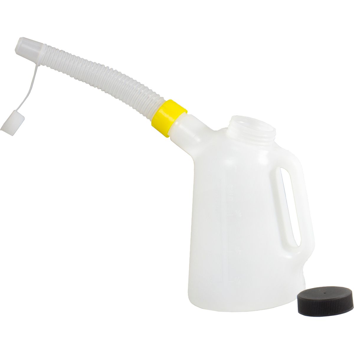 Quart de graduations surélevéesUn bec flexible à vis étendue dirige les fluides pour une versement facile dans les zones difficiles à accès