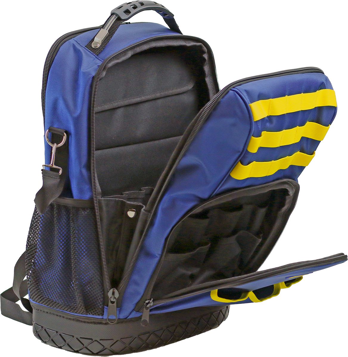 Sac à dos d'outil, bleu et jaune, 14 "longueur, 8" largeur, 18 "Hauteur globale