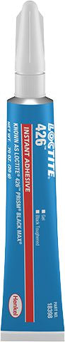 Loctite® 426™ Gel, black, rubber toughened, one part, room temperature cure, instant adhesive, designed for OEM assembly of porous, metal, rubber, and selected plastics, where running of adhesive is not permissable. Excellent peel, impact, and sheer strength. Suitable for porous surfaces and vertical or overhead applications.