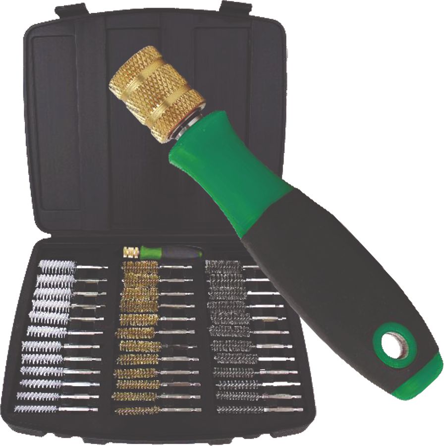 An essential addition to the professional tool box Set contains 36 brushes: 12 each of steel, nylon and brass