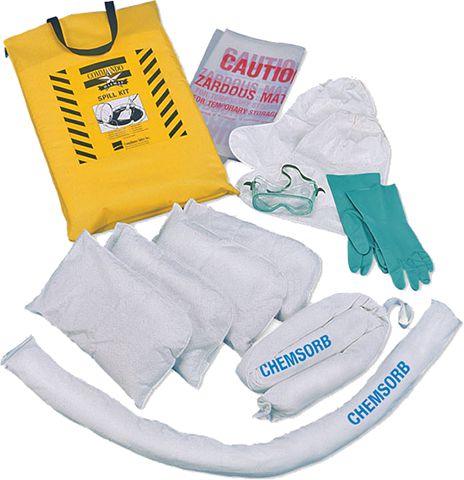 This slim, mobile spill response kit fits easily in a vehicle and may be hung on the warehouse or shop wall for immediate response to chemical spills. Ideal for vehicles transporting liquid chemicals, chemical handlers and haulers, and around mixing and storage areas. The kit is packed in a highly-visible yellow, chemical-resistant carry bag. Pick-up rating is 5 gallons of liquid per kit.Kit Contents:
